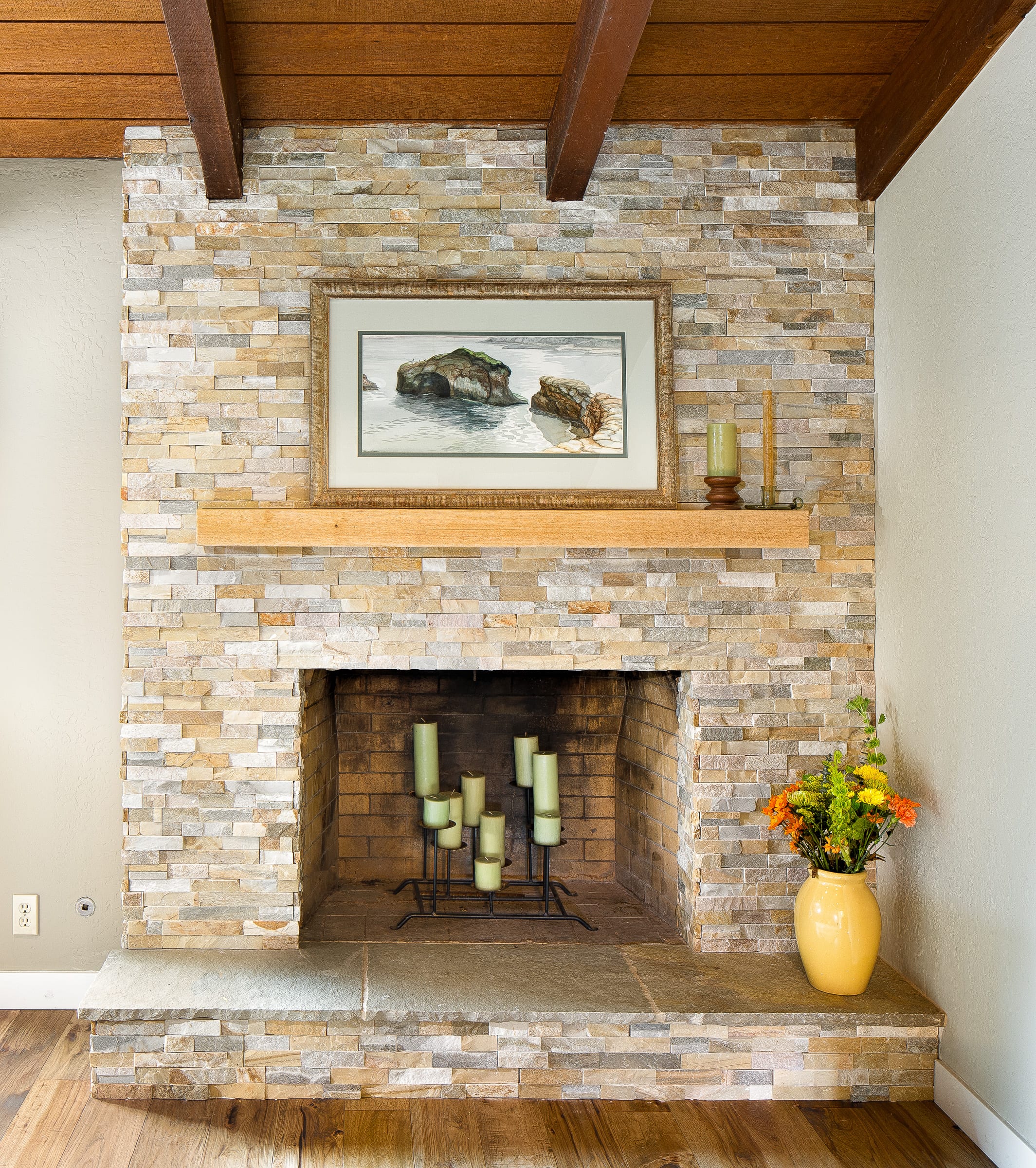 By simply removing the wall separating the dining room and kitchen area, we were able to transform the space into something fresh, new, and inviting. The now-open flow makes the room feel warmer and brighter, and the rustic hickory floors just add to the overall coziness.