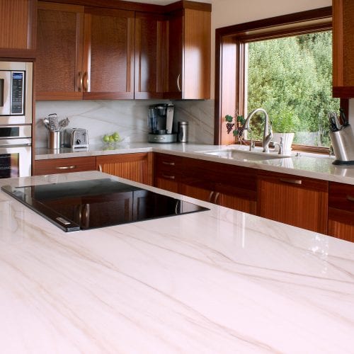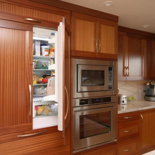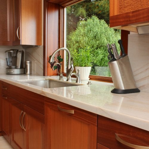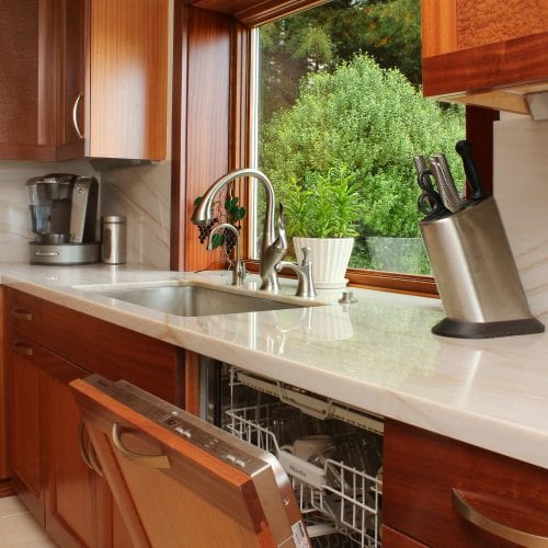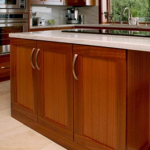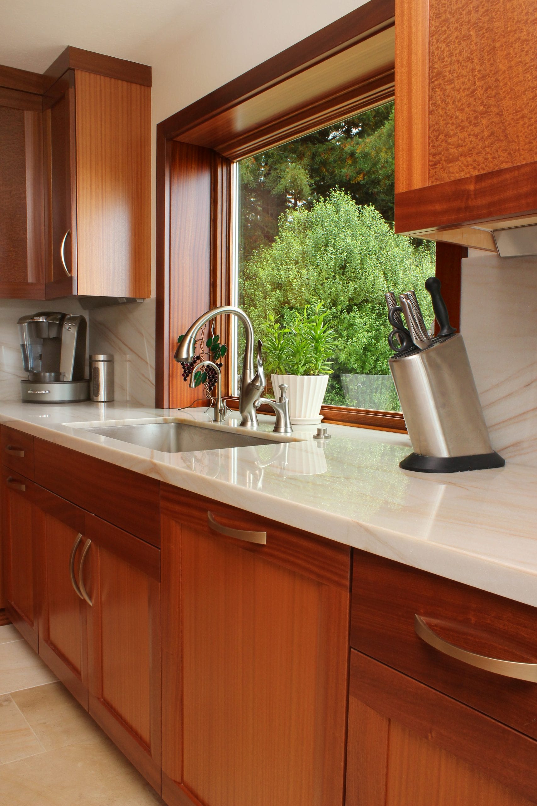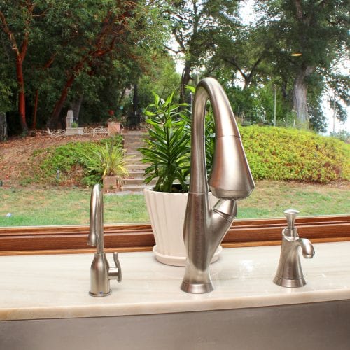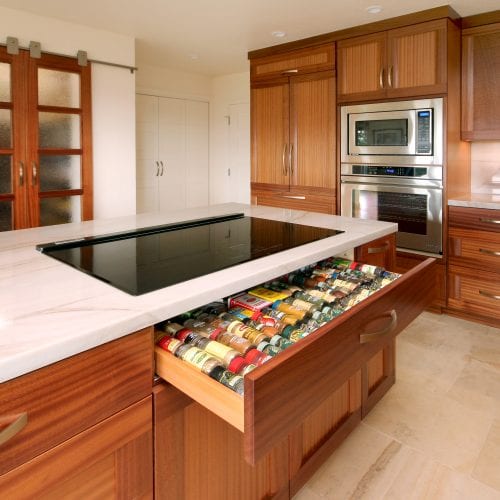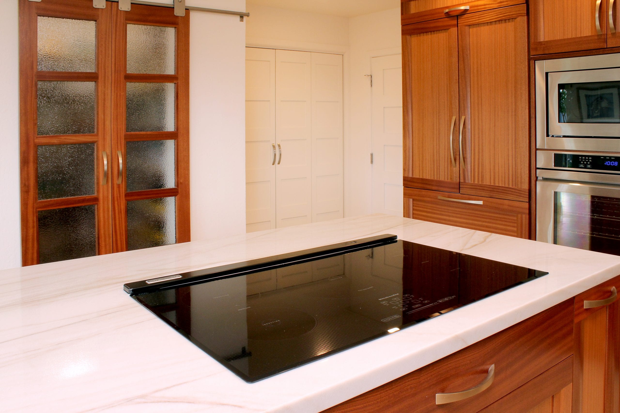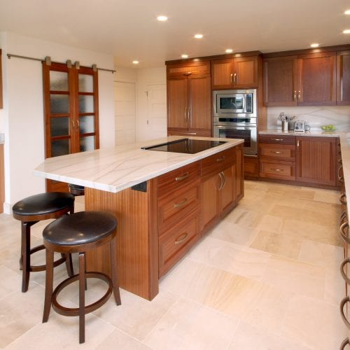 Located in the Santa Cruz Mountains, this kitchen had the potential for fresh air and beautiful ridge-top views. However, it was closed off from the stunning views by upper cabinets hanging over a peninsula. So, this kitchen remodel was all about opening up the available space. We added a lovely kitchen island and used stunning, high-end materials for finishes and touches. The awning window behind the sink can be opened for airflow. Bonus; it looks like a picture window—making for a more charmingly rustic view. Now the chef feels like she’s part of the action, inside and out!